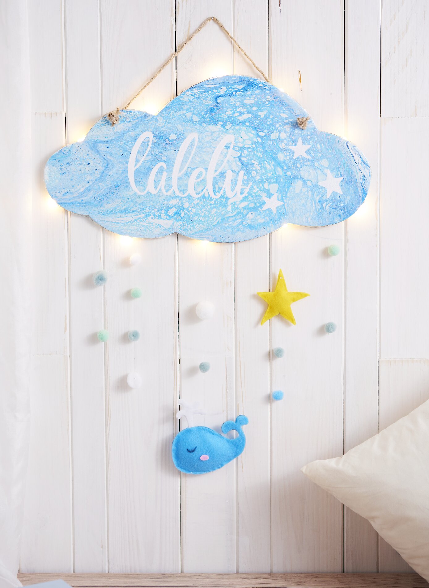 With a white Marker you can personalize the cloud. For example, how about the name of the child or a nice saying. Either write something freehand on the cloud or use a template and some graphite paper to help you.