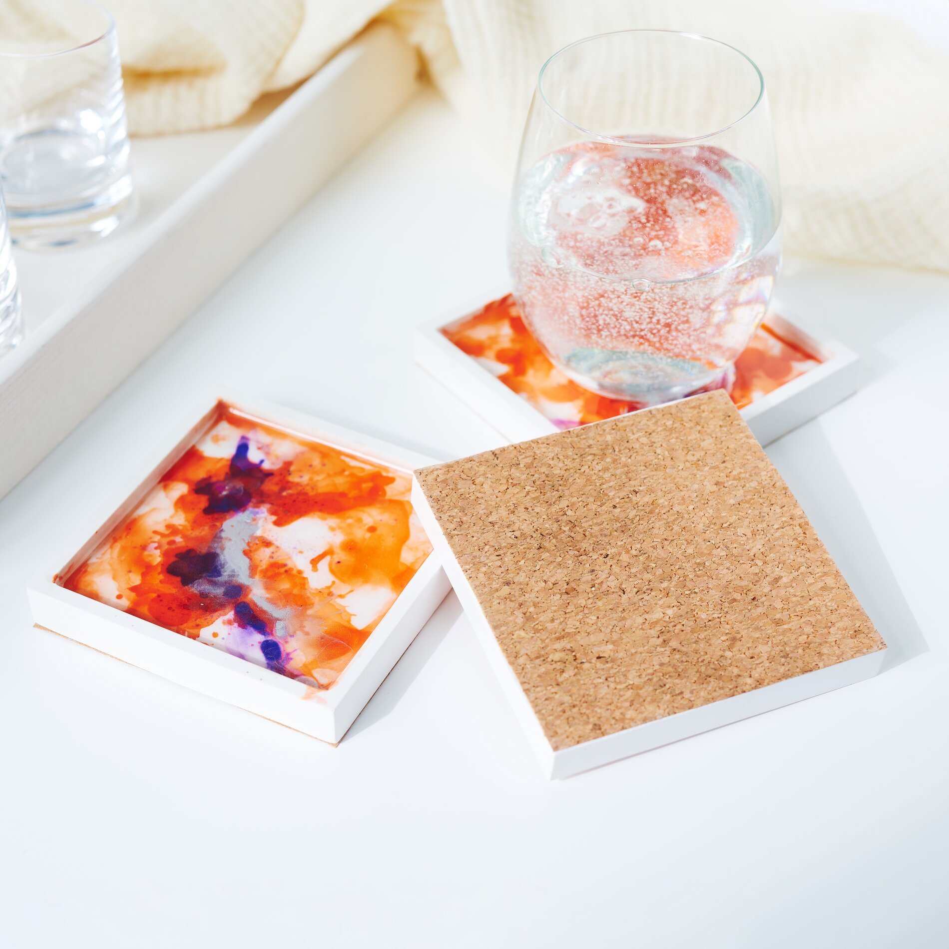 Finally, you can sand the bottom of the coaster smooth if necessary and cover it with cork. To do this, cut the cork to size and remove the protective film. Then glue it on with handicraft glue .