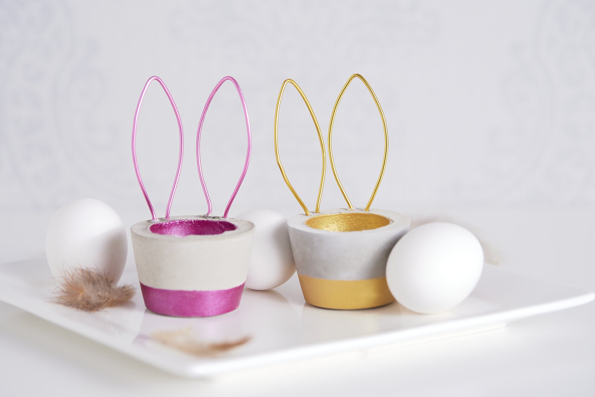 Colourful Easter eggs ones are definitely a must at the annual Easter brunch. How about matching concrete egg cups, which also work great as decoration. With gaudy accent colours, these egg cups will make for enthusiastic faces!