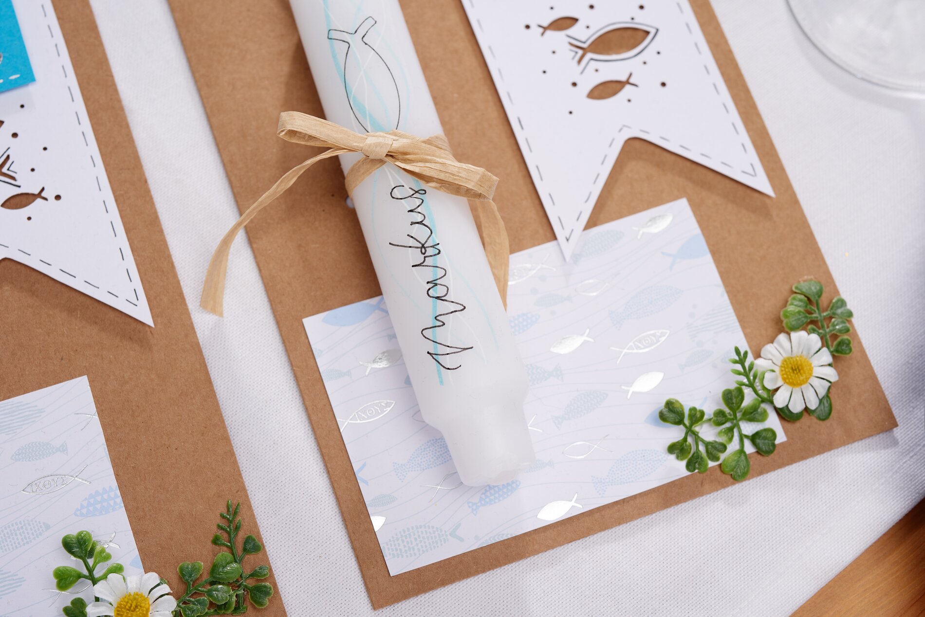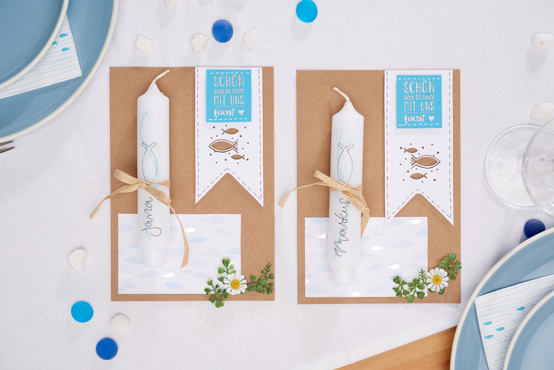 Special cards for a special occasion - With little material you can create great menu cards for the confirmation yourself. The personalised candles are a special highlight.