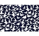 The beautiful Cotton fabric "Gull", fabrics by the meter lies about 150 cm and weighs about 150 g/m². The size of the printed motives is between approx. 2,2 x 2,3 - 3,0 x 3,5 cm. It shows many seagulls in different positions on black background.