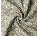 Cotton fabric "Jivana-Khaki" is a fabrics by the meter with a width of about 150 cm. The material is 100% cotton and washable at 30 ° C delicates. Of the total width, about 147 cm are printed with the motif. It is recommended to wash the fabric before sewing. The degree of shrinkage is max. approx. 6 %. A light quality that can be easily processed with a standard sewing machine.