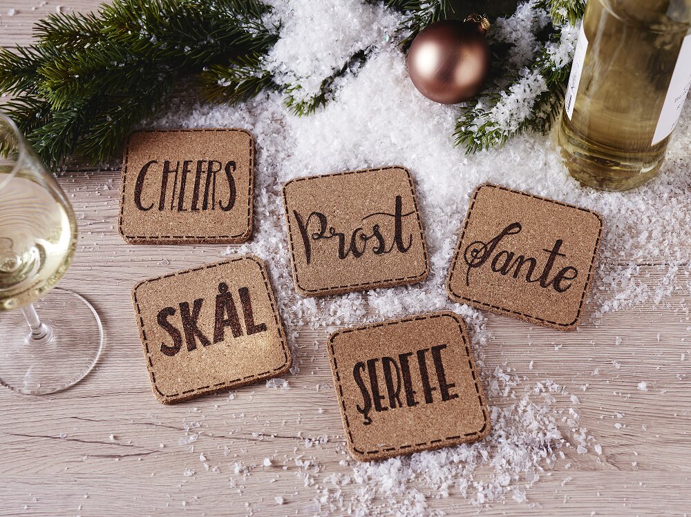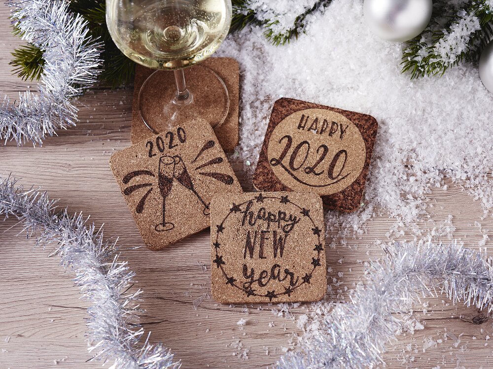 Whether with the names of the party guests, a funny saying or a picture suitable for New Year's Eve - these made of cork Coasteroffer an incredible amount of space for design. With a pencil you can paint your desired motif or a slogan on the cork coasters. Tip: If you don't dare to write on the surface by hand, you can print out the desired lettering or motif and Coaster transfer it onto the coasters using graphite paper