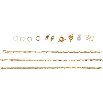 With 18 pieces, including playful charms and discreet lobster clasps, you can create individual bracelets or a stylish necklace in no time at all. The chains can be worn individually or put together to create a multi-piece link bracelet to suit your taste.