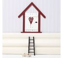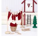 The little elf home can be with ladder, shoes, clothesline, kitchen utensils, sled and other included parts in miniature format cozy. The simple wooden parts can be wonderfully painted with craft paints. pattern The felt can be used to cut out small items of clothing such as hats, scarves and coats. In addition, the miniature world can be completed with a little decorative snow and a chain of light.