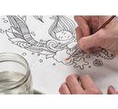 The sports bag has a size of approx. 48 x 42 cm and the pencil case is approx. 22 x 6 cm large. They are made of 100% cotton and are printed with the motif of an enchanting mermaid and other underwater creatures. In addition, this set includes six fabric painting pencils with the line width of approx. 1-2 mm, and instructions included. After completion, the utensils are washable at up to 30 ° C.
