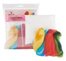 The soap sprinkles, as described in the enclosed instructions, mix, knead and form into as many and large soap balls as you like. The formed soap balls in the connection evenly with the multicolored Knit felting wool wrap and moisten