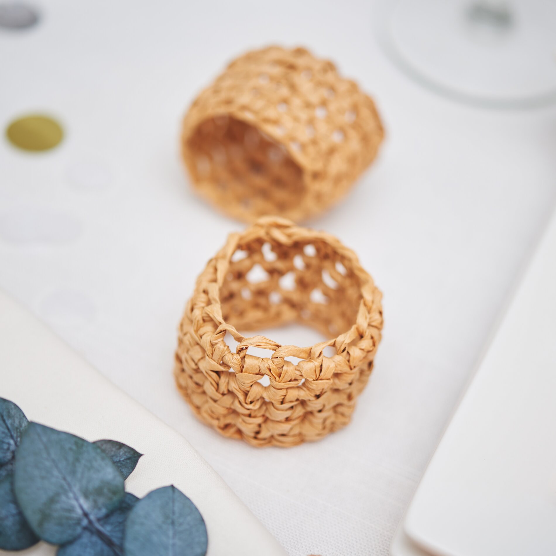 Crochet four rounds of slip stitches. The crochet hook is inserted into the next stitch and the loop pulled out is pulled through the loop on the crochet hook. This technique ensures a firm, clean result. The best way to hide the beginning and end of from raffia is to pull it through between the stitches using a 3.0 crochet hook.