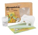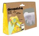 The wonderful set Décopatch Kit Mini "Elephant" consists of 5 parts! The Décopatch paper measures 30 x 39 cm and is printed with two different patterns. One sheet is Yellow printed with a flower pattern and one sheet is printed Turquoise with a filigree pattern