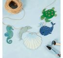 A set of 5 wonderful Decoration pendants "Sea animals" made of plywood with a thickness of about 2 mm. Included are the motifs dolphin about 10 x 3.5 cm, seahorse about 4.6 x 10.3 cm, turtle about 10 x 7.8 cm, whale about 10 x 8 cm and shell about 10 x 9.3 cm. All wooden pendants have a hole of about 3 mm for attachment to a ribbon / jute ribbon.