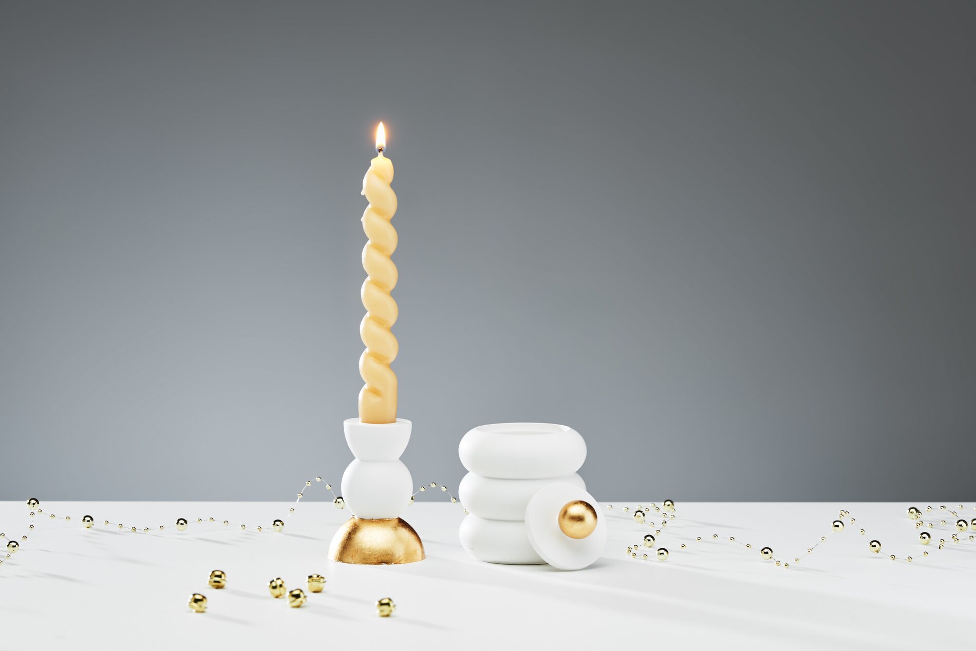 Tip: Fixing candles If your pillar candle is too large in diameter, you can adjust it with a candle sharpener. To hold the candle firmly in place, place an adhesive wax plate in the base of the casting.