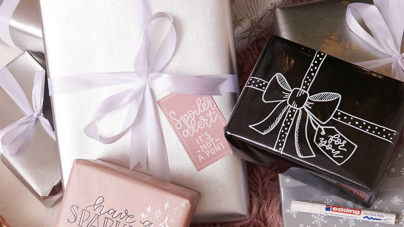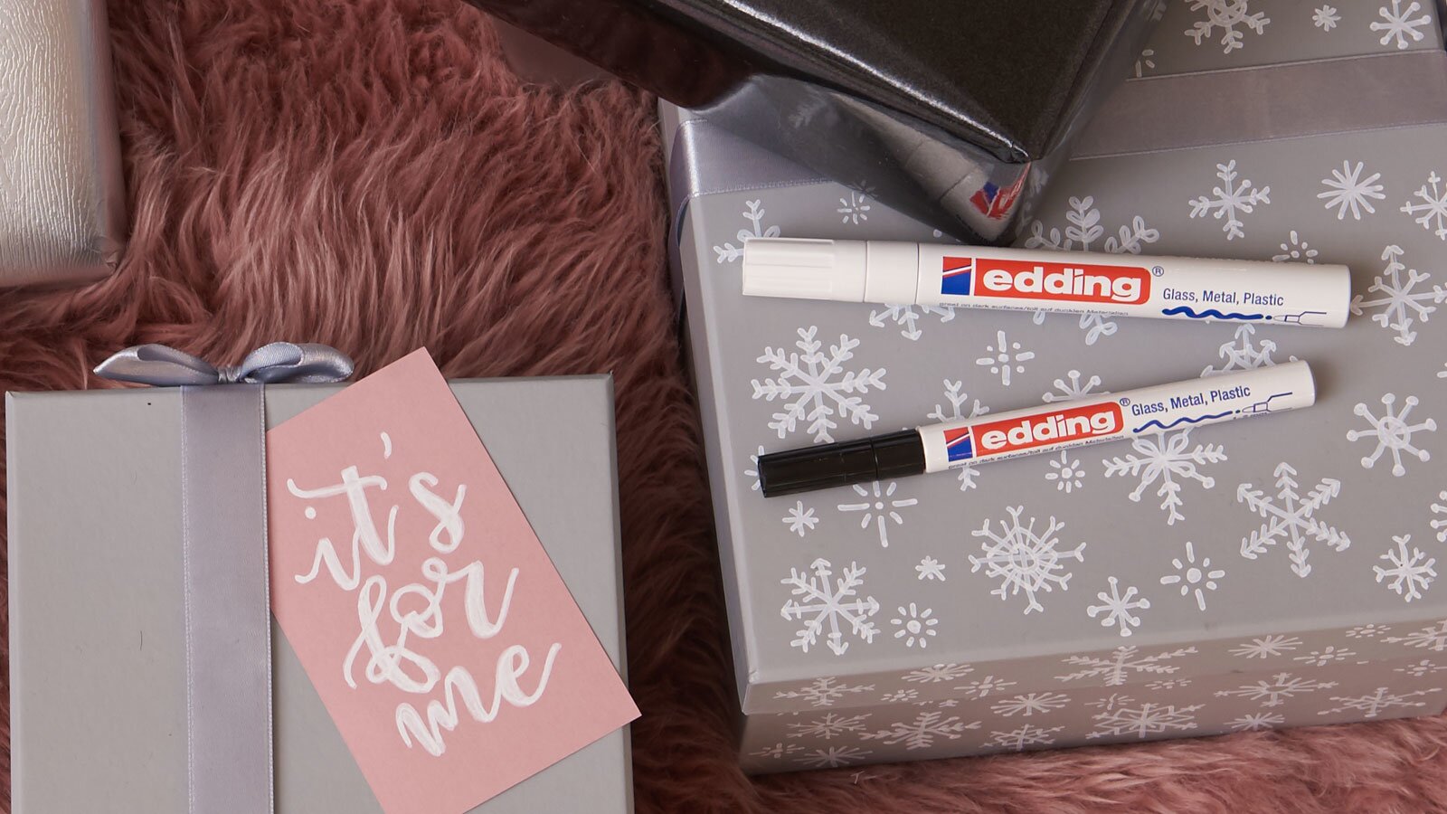 There are no limits to your ideas: Christmas greetings in beautiful handwriting, stars, angels, snowflakes or decorative bows - you can do it all simply and easily with edding gloss paint markers. The varnish-like opaque ink holds perfectly on smooth, light and dark surfaces. The versatile markers are available in up to 18 brilliant colours, including white and many metallic colours. There are different line widths to choose from.