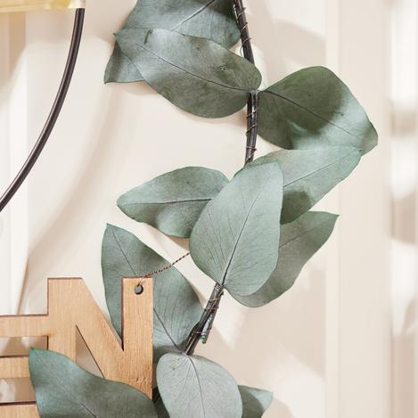 Tie eucalyptus-twigs to the metal rings with wire. These give your project a natural beauty.