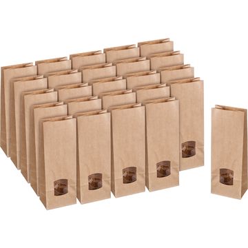 Doypack stand-up pouches with window are equipped with a tear notch and reinforced pressure seal. The food-safe kraft paper bags are perfect for gifting homemade cookies, chocolates and candies. Also ideal for spices and tea. One package contains 25 pieces.