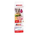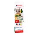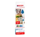 This edding textile pen set is available in 3 different colour combinations, each with 5 pens. Fixing is achieved by ironing without steam.