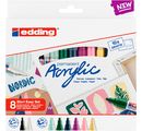 A wonderful edding "Acrylic marker - "Nordic" set with 8 acrylic pens. The pens have a stroke width of approx. 1-2 mm and are equipped with a dimensionally stable bullet tip. These acrylic marker are the best choice for filigree strokes, fine finishes and precise details. The perfect pens for painting on canvas and paper. This set includes the colours Traffic White, Jet Black, Mild Mint, Elegant Night Blue, Noble Mauve, Pastel Yellow, Berry and Moss Green are included.