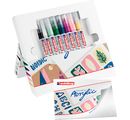 The Acrylic paint in the pens will convince you! They achieve best painting results, high opacity and brilliant colours. In addition, the paint is quick-drying, waterproof, low-odour and lightfast. This guarantees you the luminosity of your works of art for a long time. Due to the handy shape of the marker an even application of paint is possible. A set that is versatile and inspires with its fine choice of colours. The ideal travel companion offers you spontaneous creativity. Allow yourself an excursion into the world of colours and enjoy the creative time out.