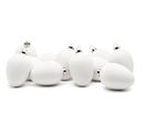 Eggs-Decoration pendant from raw, white Terracotta. You will receive 12 Terracottaeggs with metal suspension eyes. The Decoration pendant have a diameter of about 4.5 cm and a height of about 6 cm.