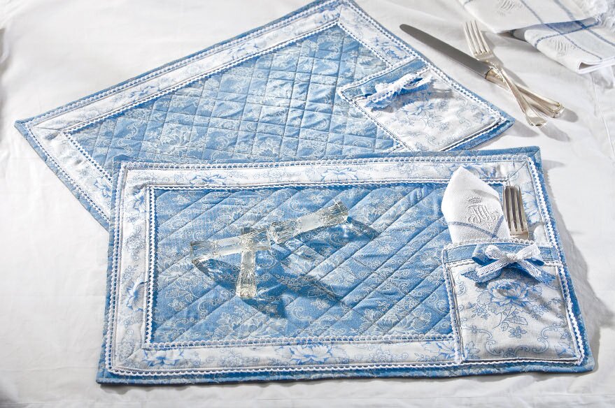 These beautiful place sets give your coffee table the final touch. The delicate fabric pattern is shown to its best advantage on the large surface, and the diagonal quilting gives it additional structure.