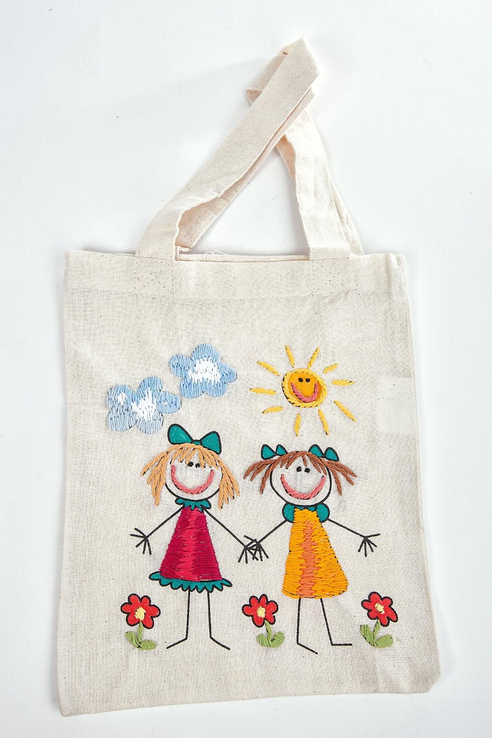 And so it is done:  Put one sheet Paper in the pocket. This will prevent it Fabric paint from pressing through to the back and also makes embroidery easier.