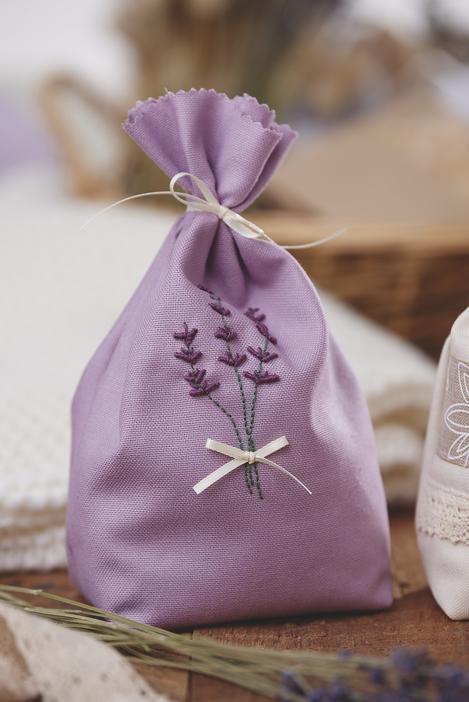 The lilac bag is embroidered with a lavender motif. Trace the lavender flowers onto the fabric with a Stroke Ex pen. The lilac ink on this pen will fade after a while, but will be visible long enough to use as an embroidery guide.