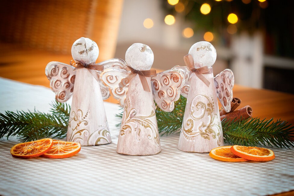 Finally, glue the wings completely back to the body and tie a bow around the neck with the chiffon ribbon.