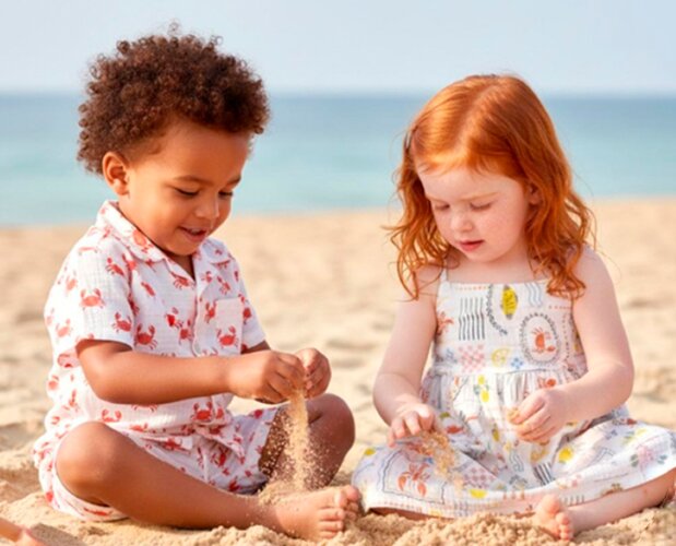 Crinkle muslin cotton fabric with hot-foil effect "Stripes", Powder