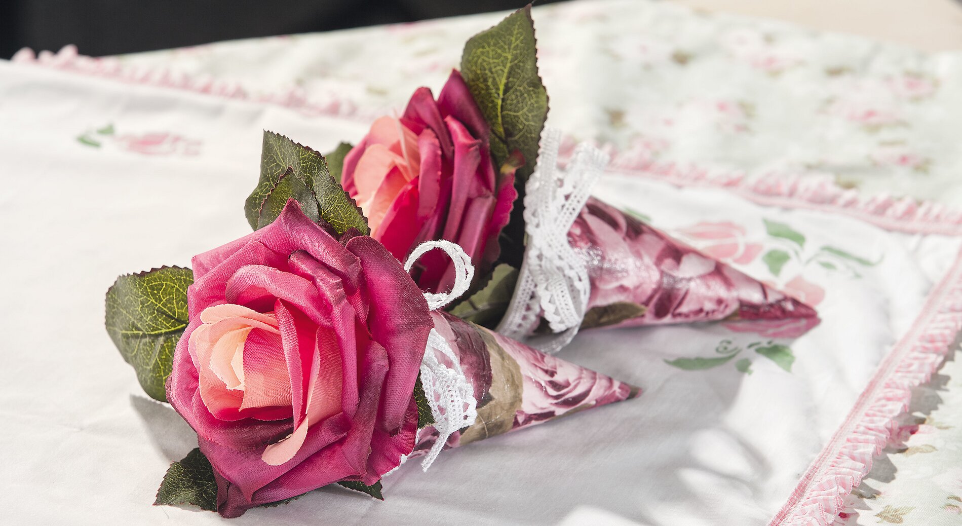 Quickly made is this classic romantic table decoration, which enhances every festively set table enormously. And the rose bags are also a distinctive decoration in themselves, which fits well anywhere.