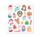 The Glitter sticker set "Christmas" is a real dream for all craft and DIY fans. It contains 4 sheets with different animals and Christmas motifs such as fir trees, houses, rainbows, snow globes, Santa Clauses, penguins, raccoons, birds, cats, bears, moose, llamas, mice, squirrels and many more.