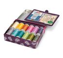 With the Gütermann Cotton 30-Box, you can add color to your sewing project and ensure perfect results! The Gütermann Cotton 30-Box is the ideal choice for anyone who values high-quality sewing thread. The stylish storage box in a bag look contains 12 spools of 300 m cotton sewing thread in particularly beautiful multicolored colors, 5 universal sewing machine needles in NM 80 and 3 cotton labels. So you have everything you need for your sewing projects in one practical box.