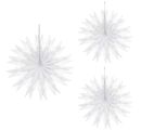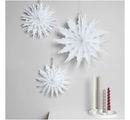 You get 3 honeycomb paper ice crystals. 2 with a Ø of 30 cm and 1 with a Ø of 45 cm. They are a beautiful eye-catcher and are perfect as decoration for Christmas and winter parties . They are also a great idea as a gift.