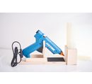 In addition to the glue gun, you will receive a matching holder made of robust birch plywood measuring approx. 30 x 10.5 x 12 cm and a total of 1 kilogram of glue sticks with a diameter of 11 mm and a length of approx. 20 cm. In addition to a suitable stand for the hot glue gun, the holder has a storage compartment measuring approx. 10.5 x 5 cm. The inside dimensions are approx. 9 x 3.5 cm and can be used to store the glue sticks. Thus all utensils for gluing are directly at hand