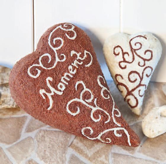 With the VBS Granite-colour you achieve a great Stone-look. Ideal for the design of wood Stretched Canvas, cardboard, metal and like here on Polystyrene hearts.