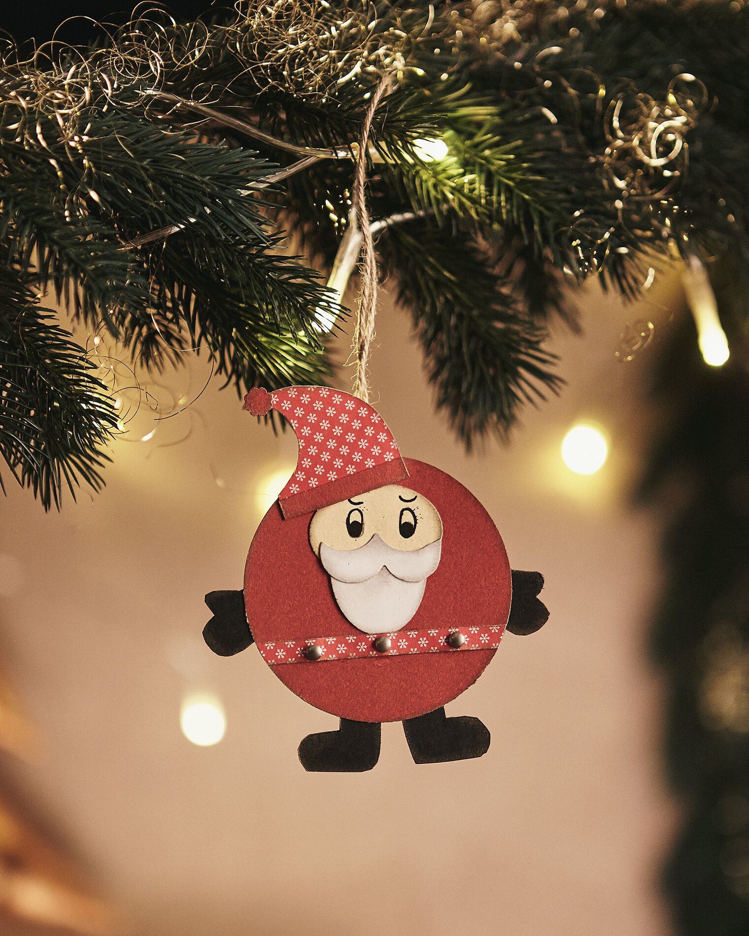 The body (Ø 5 cm) and the face (2 .5 cm) are punched out. Cut out the cap, beard, hands, feet and belt. The rivets simply with the Pearl Paint on pen.