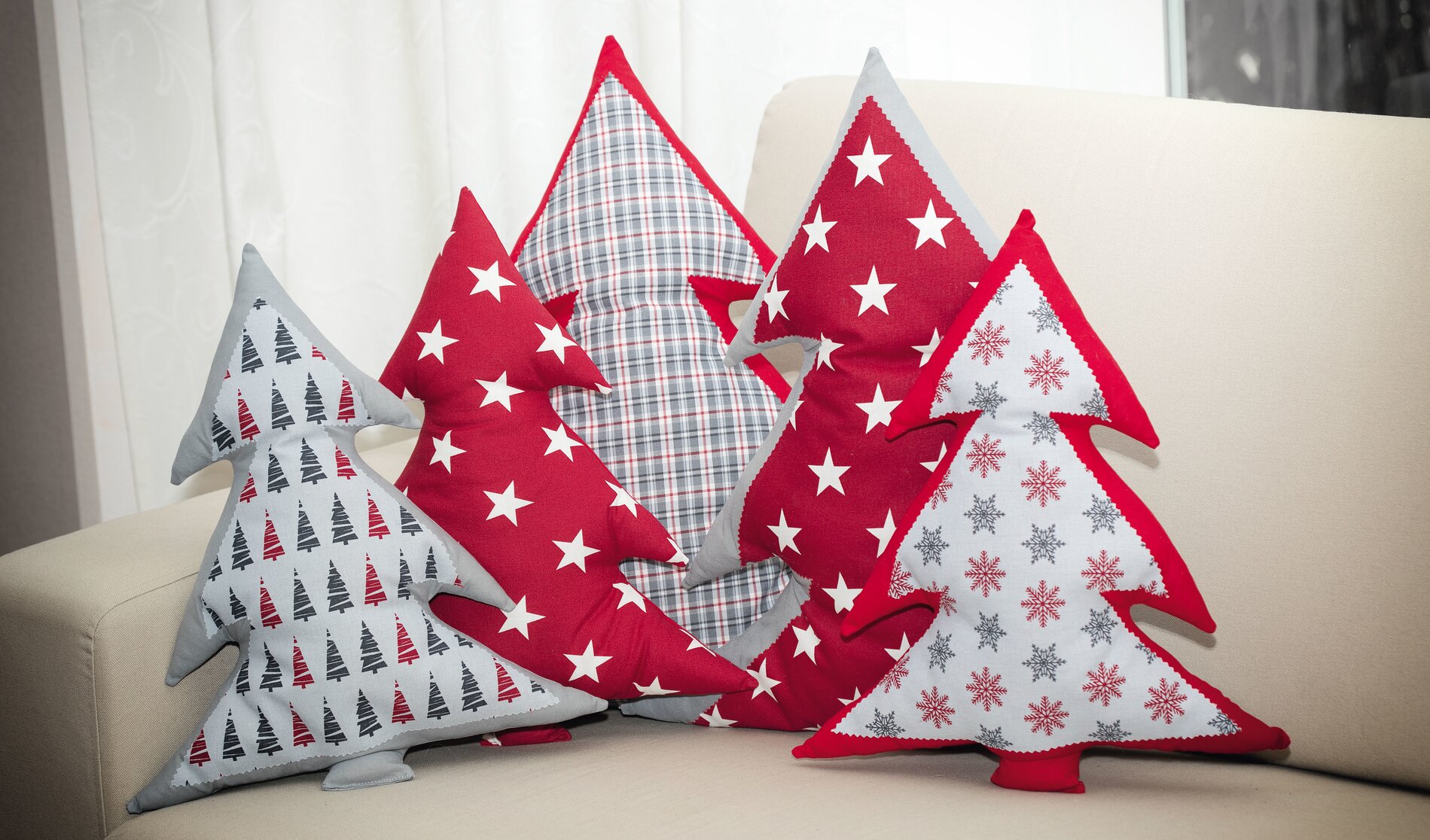 Every Christmas tree is sewn according to the same principle. Sew cushions in number, size and with decorative fabrics of your choice.