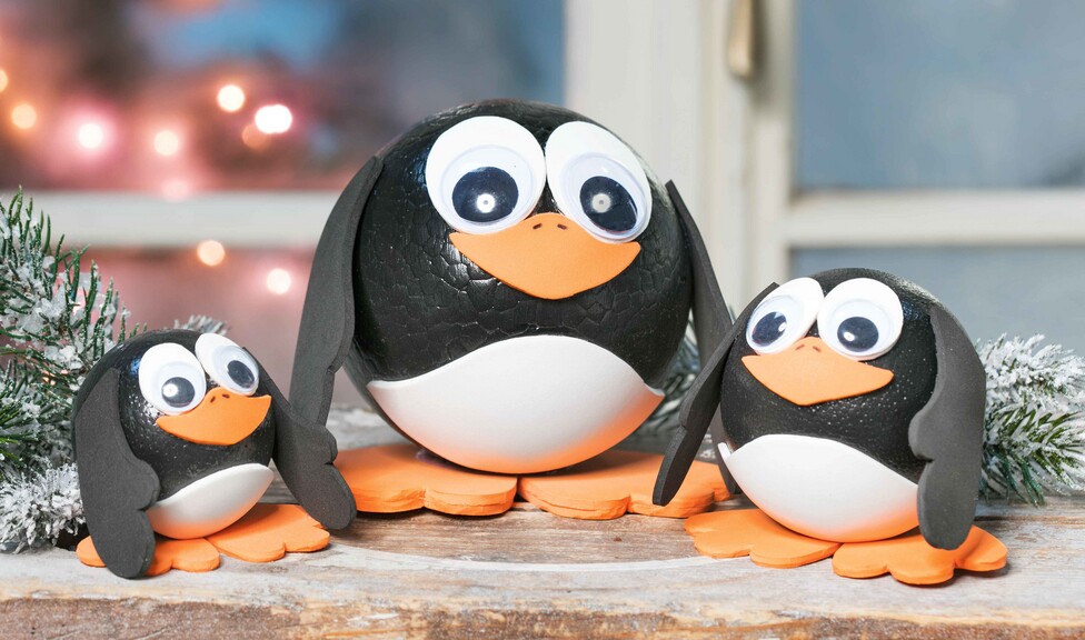 These funny penguins are the absolute hit. Whether as a creative decoration-Article for your home or as a gift - the penguins from Polystyrene and Foam sheets will put a smile on anyone's face in no time. With these step-by-step instructions and the matching motif template, you can easily recreate the cute penguins.