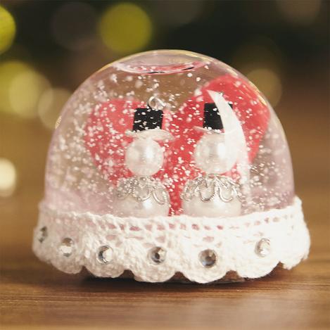 Fill the snow globe with water through the bottom hole. So that no clouding of the snowball occurs, Preservative according to the product instructions. Add snow filling material. Finally seal the bottom hole with super glue.