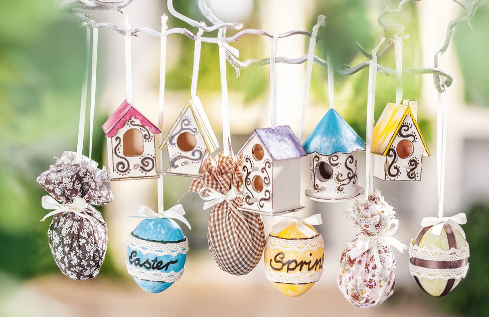 Treat yourself to a romantic Easter decoration. These birdhouses and Easter eggs are lovingly decorated with some paint, fabric and Lace ribbon . The crafting of the Easter decorations is very easy!