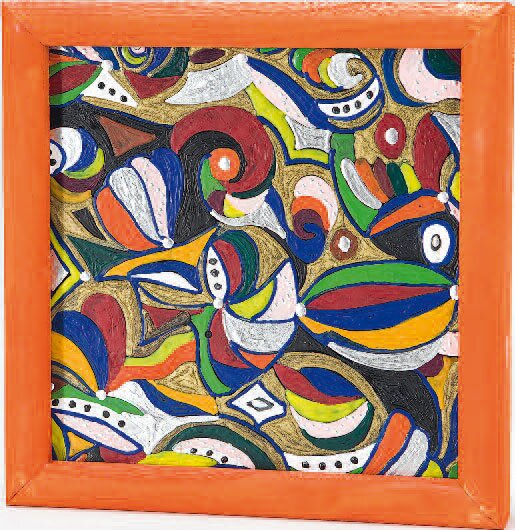 This modern picture was created with the painting pen. This works almost like a fountain pen. You pick up the wax directly with the tip and then draw contours and patterns on the painting card. Encaustic can be that easy!