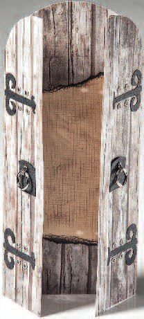 Transfer the "fittings" from the template sheet four times to black cardboard, cut them out and glue them to the card with a glue stick. Also glue two small squares at the height of the door handles.