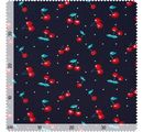 Do you love being creative and sewing your own garments or accessories ? Then our Jersey fabric "Cherries" is just the thing for you! The motif with cherries in red and small white dots on a dark blue background is a real eye-catcher and can be perfectly combined with other plain jersey fabrics or matching jersey motif fabrics.