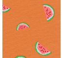 Bring colour and freshness to your sewing projects with the Jersey fabric Neon "Melon"! This vibrant fabric, printed with small watermelons on a cheerful orange background, is the perfect companion for your summer creations.