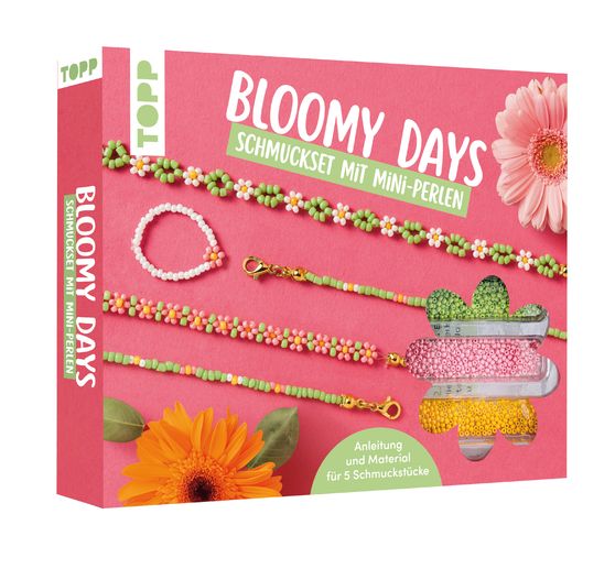 In the mood for spring? Bring spring to your wrist with the Jewellery set with mini pearls "Bloomy Days"! With this enchanting jewelry set, you can effortlessly create five unique pieces of jewelry from mini pearls. Be inspired by nature and design three bracelets, a ring and a choker that reflect the grace of fresh flower meadows.