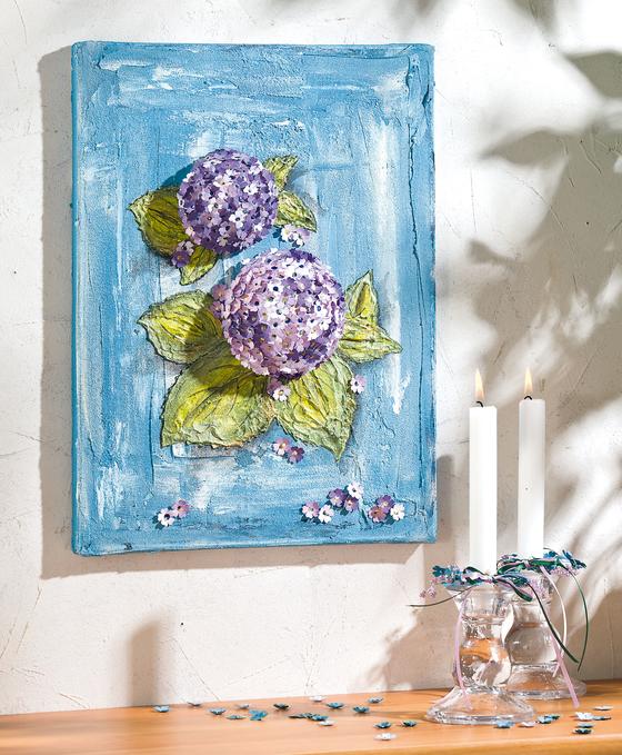 Keilrahmen "Hortensie" mit ausgestanzten Papierblüten