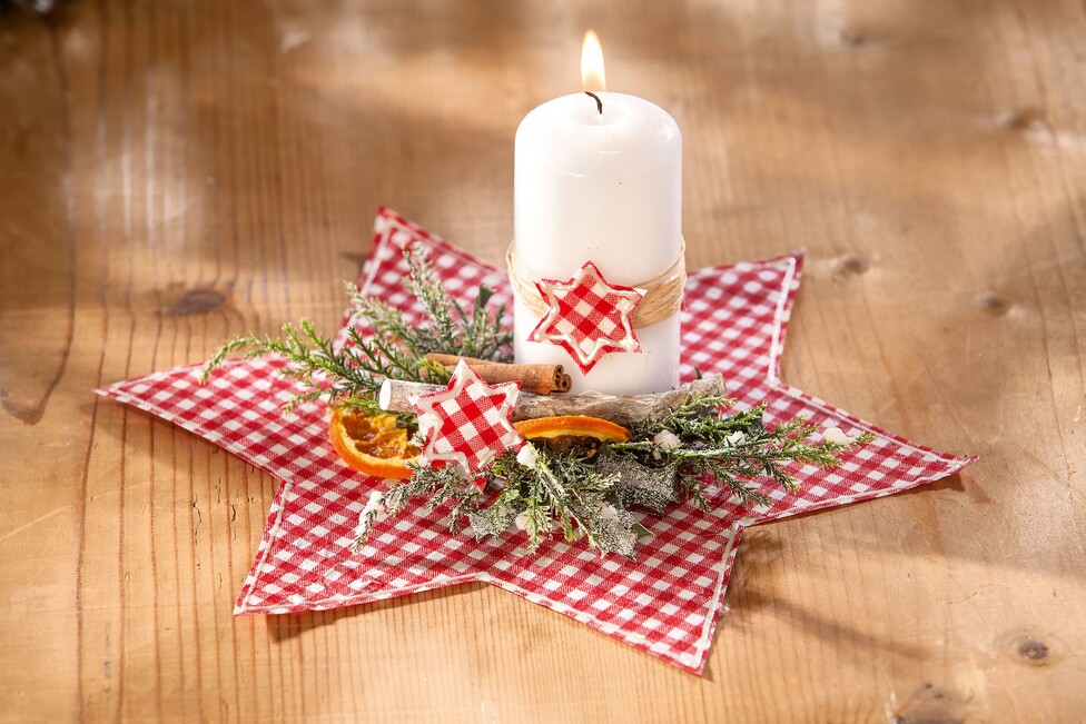 Extra handicraft tipMatching this table decoration there are Christmas tree pendants, which are made with the same technique. Please read the idea