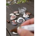 The pen with bullet tip for thin lines, with a line width of approx. 2 - 4 mm, contains water-based metallic permanent Acrylic paint. markers. These dry waterproof and weatherproof on absorbent surfaces and are lightfast.