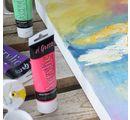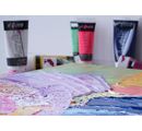 The colours are characterised by their luminosity and can be mixed with each other and diluted with water. So you can apply the colours opaque or glazed and achieve special effects. With the fluorescent colours of el Greco Acrylic you can set great accents that glow under black light.