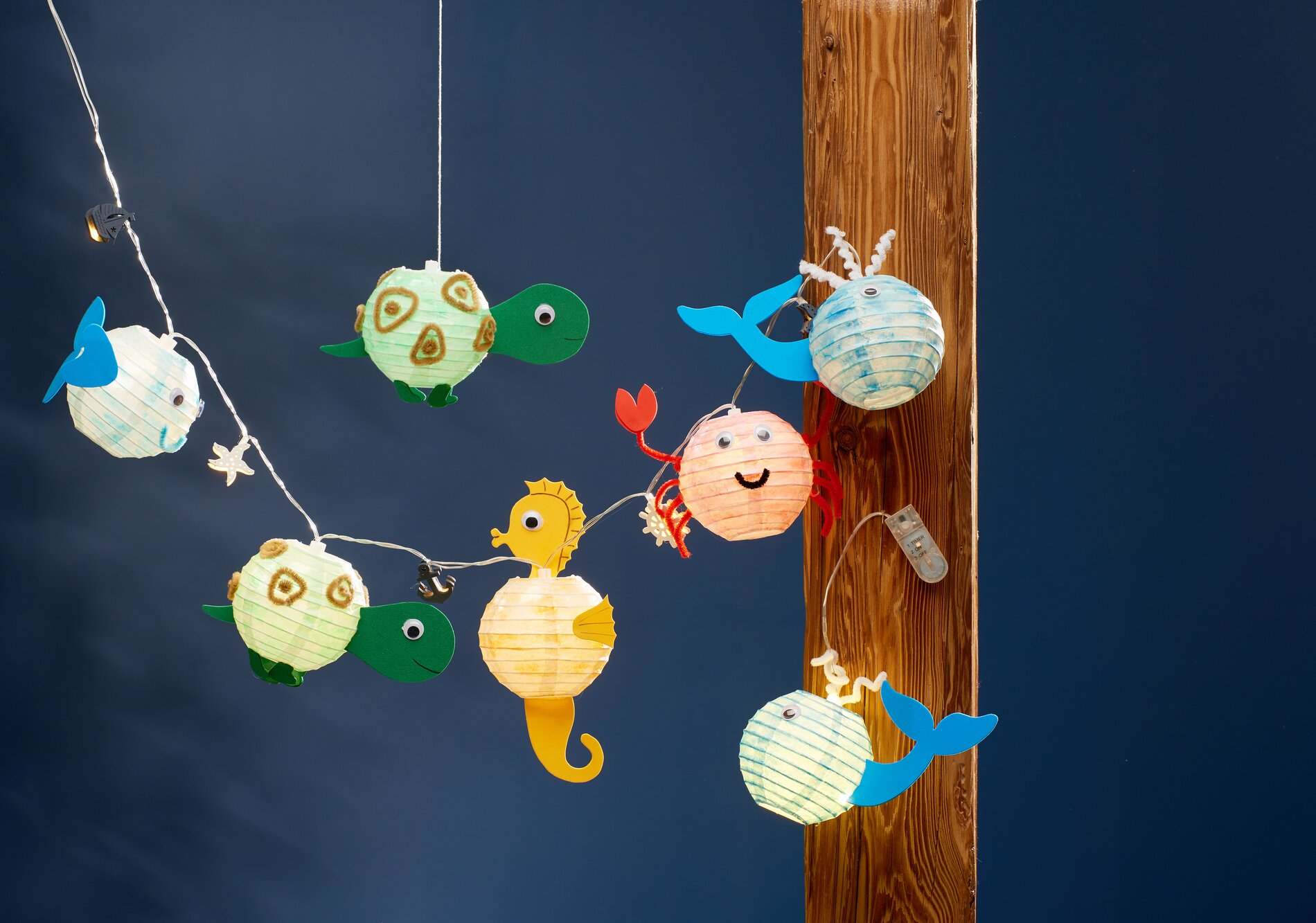 These cute lantern sea animals are a pretty decoration and make additional super fun to tinker them. Whether big or small, everyone enjoys creating the little animals with bright colors and fancy decorations. Through the light chain all animals shimmer in a warm light.