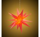 Beautiful and high quality LED 3D star "Wega" in red with a Ø of about 60 cm. The decorative star made of plastic is suitable for outdoor use and has 18 rays. It is equipped with a transformer IP44 and 6 m supply line.