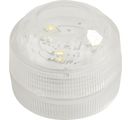 A LED tea light, waterproof, with 3 light sources. Switch on and off by simply turning it. Burn time approx. 16 hours. 2 CR2032 batteries are included.